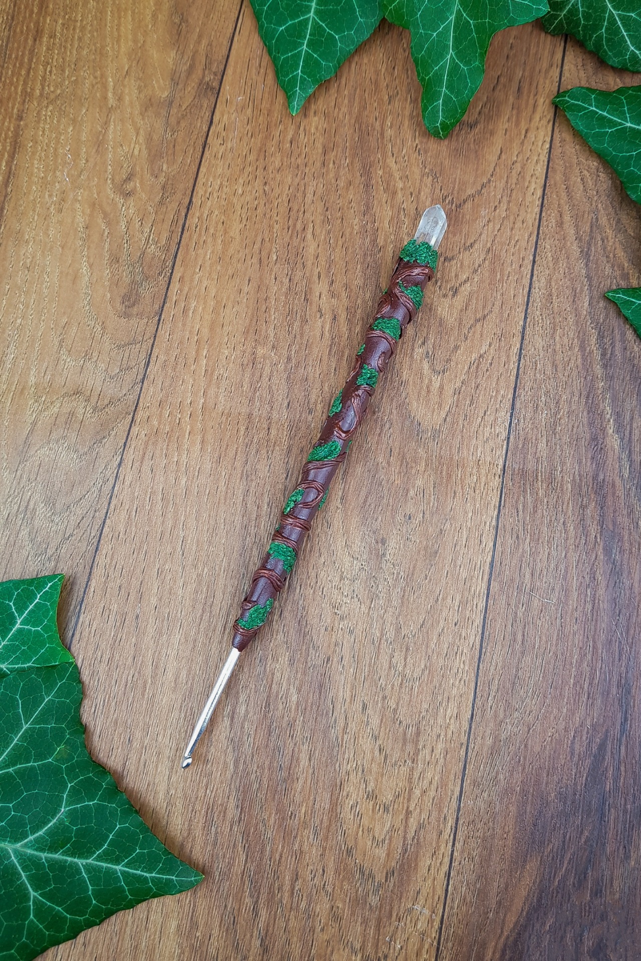 Ručně vyráběný háček na háčkování v přírodním, mystickém stylu.