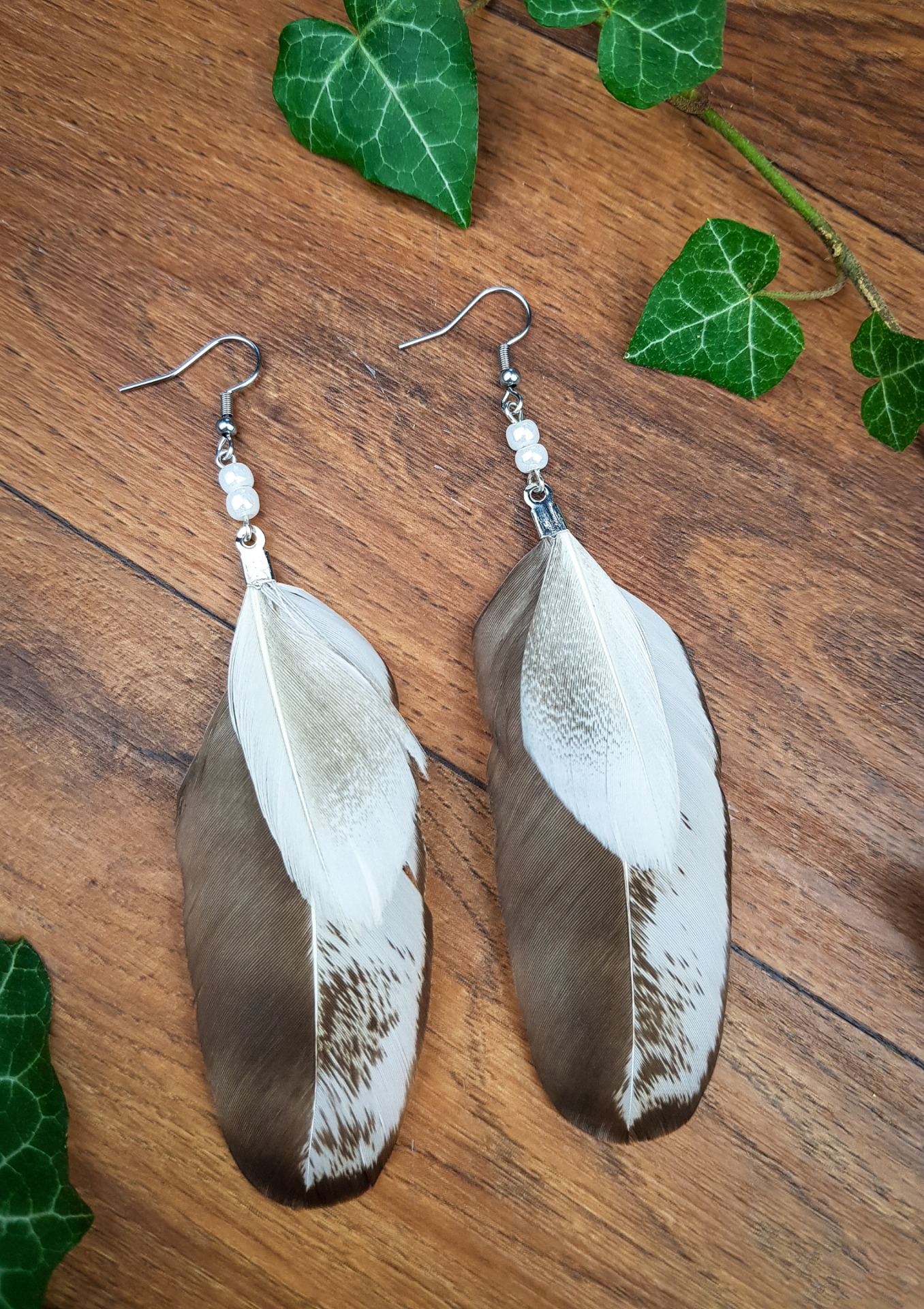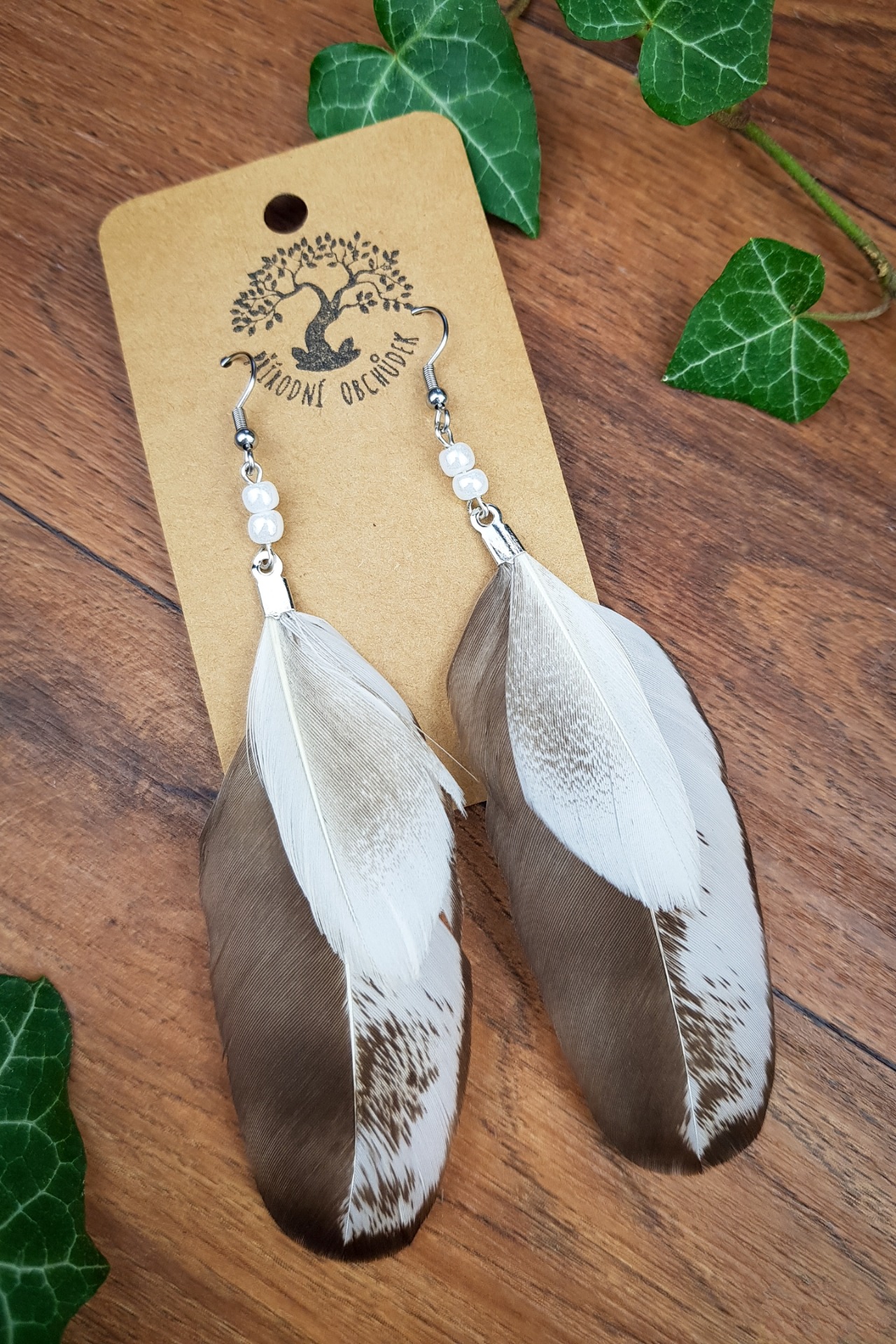 Ručně vyráběné peříčkové náušnice s korálky.Materiál je vhodný i pro alergiky