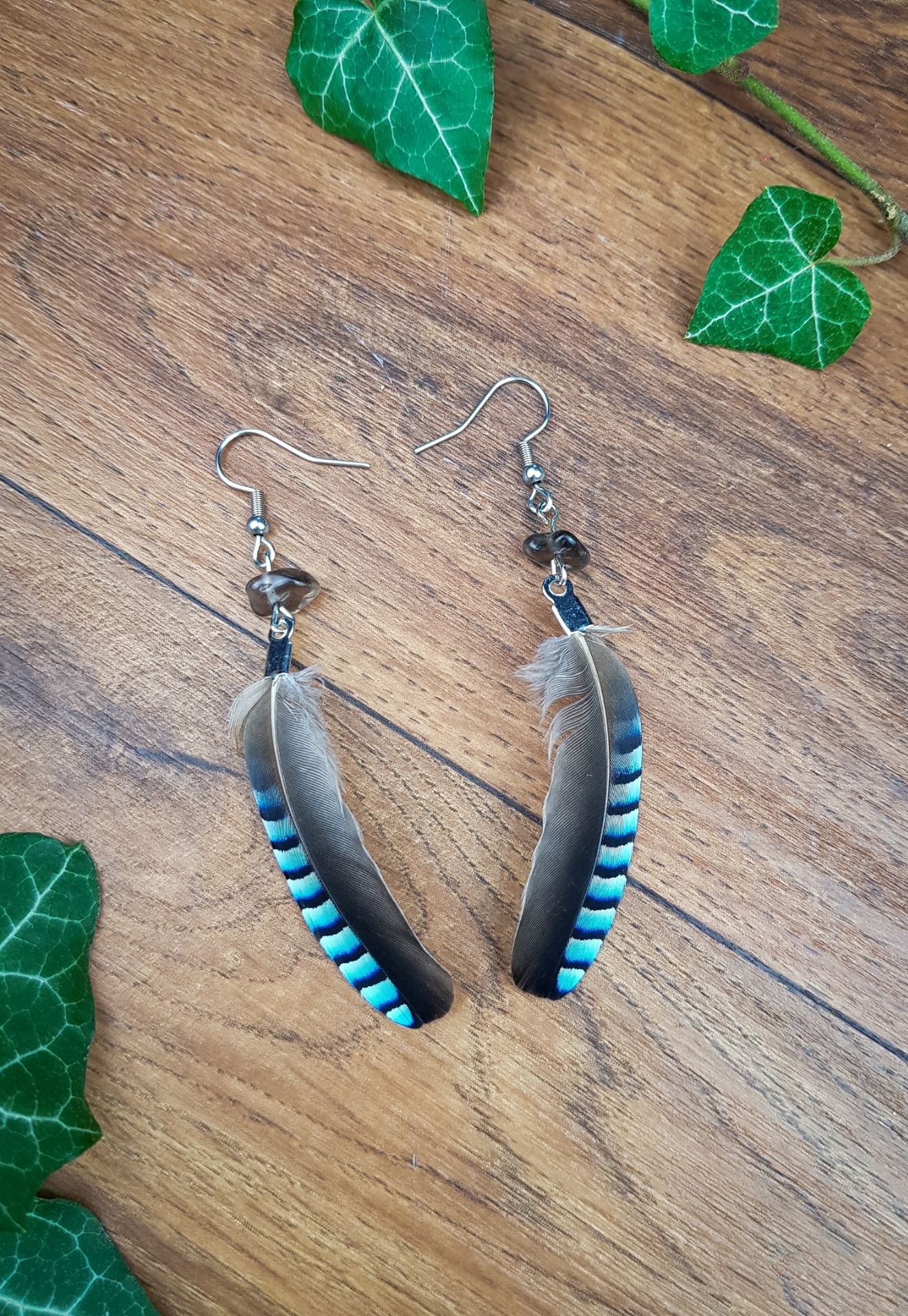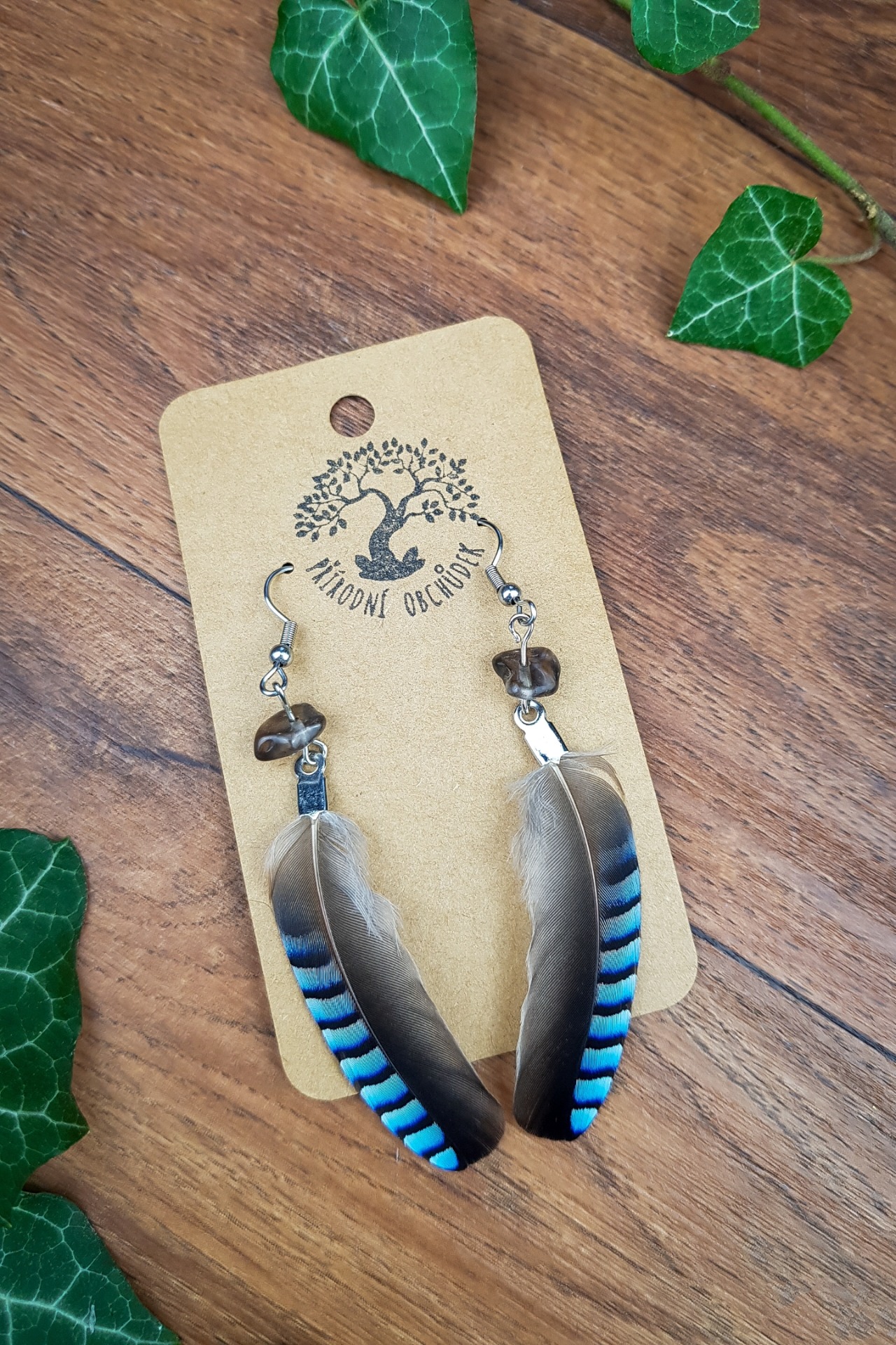 Ručně vyráběné peříčkové náušnice s minerály - záhněda.Materiál je vhodný i pro alergiky