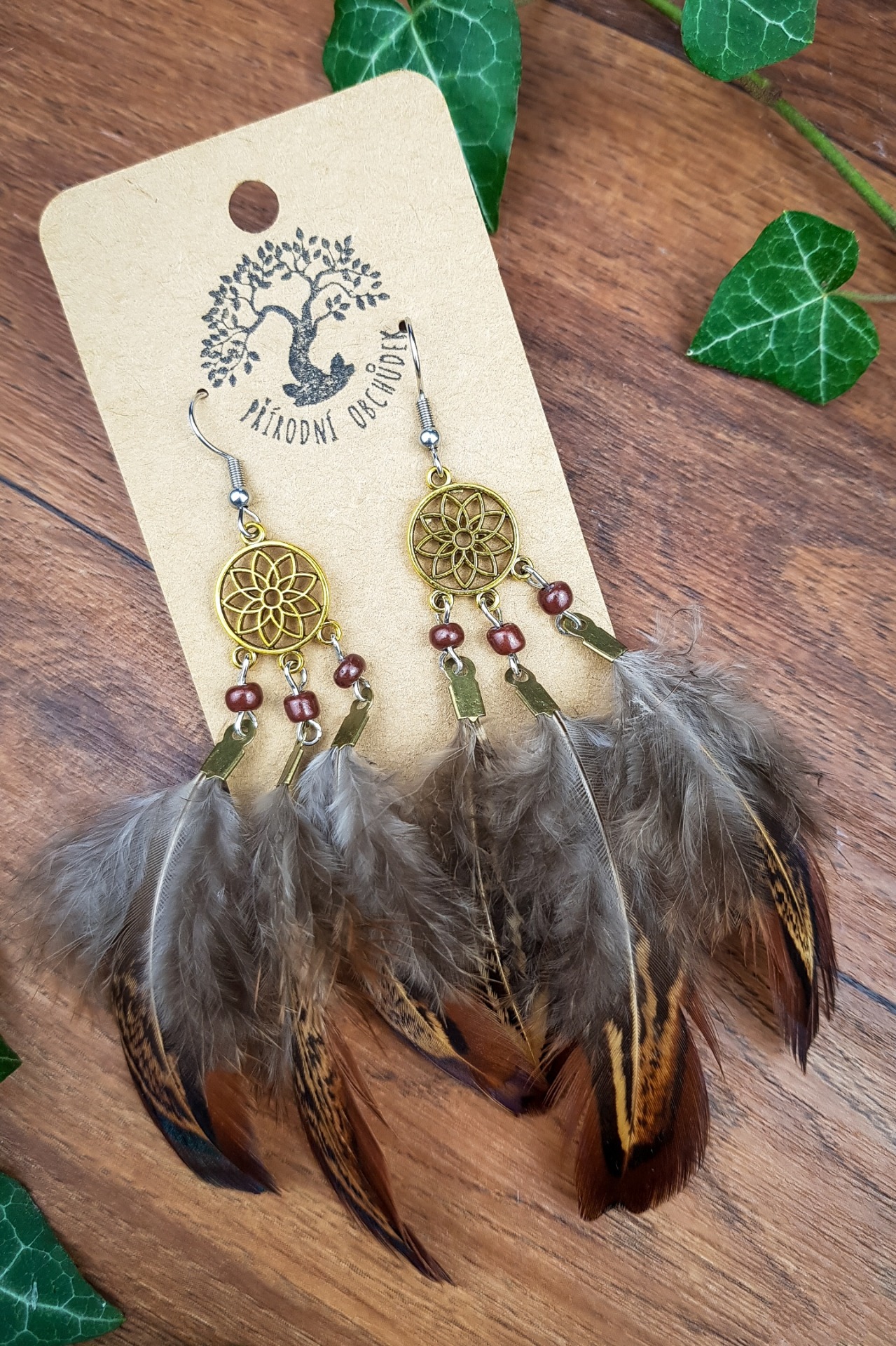 Peříčkové náušnice - lapač snů zlaté - typ 2