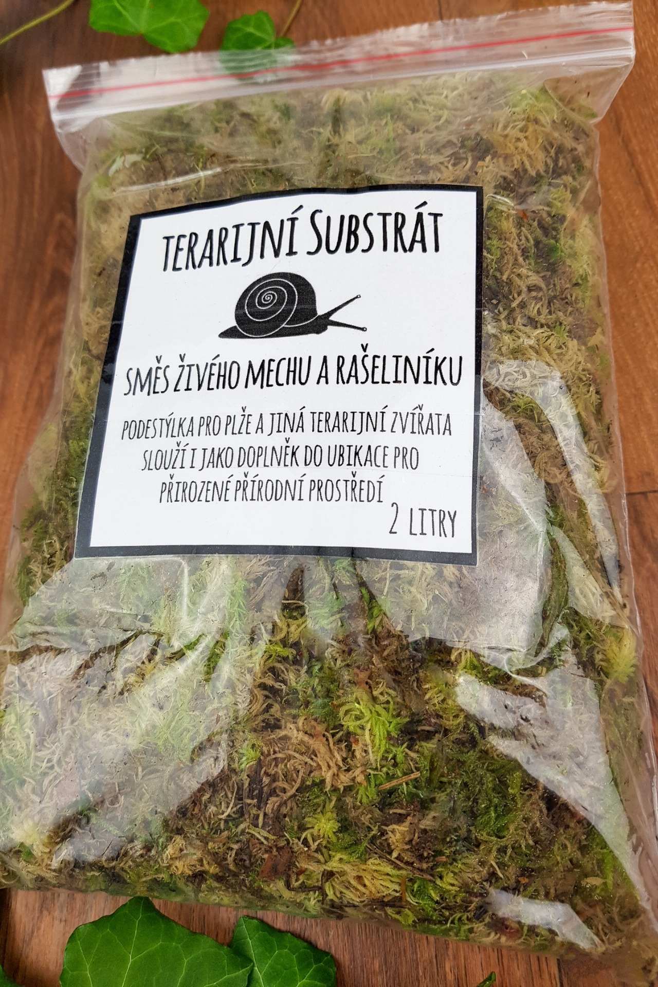 Terarijní substrát  z živého rašeliníku a mechu vhodný pro všechny druhy plžů a jiná terarijní zvířata